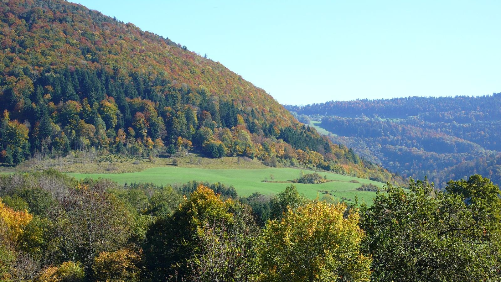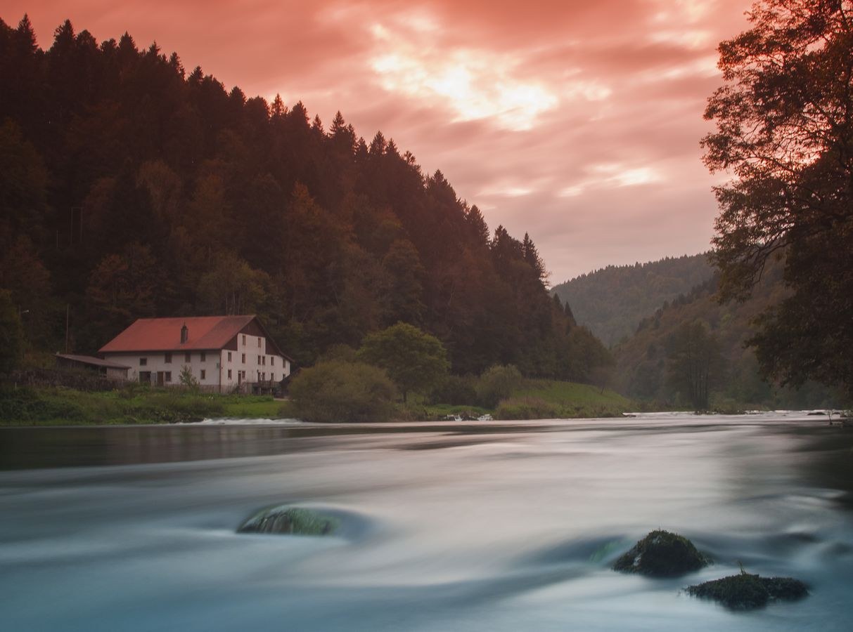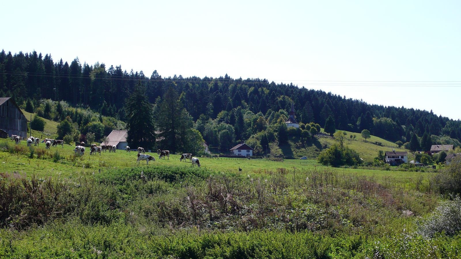 La rivière le Doubs fait frontière avec la Suisse. Cette partie au sud et au bas de la commune offre des paysages variés.
